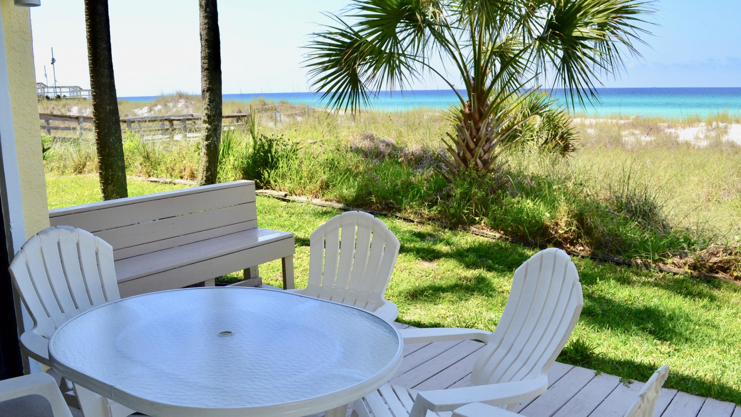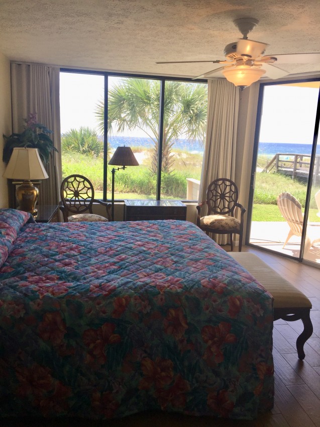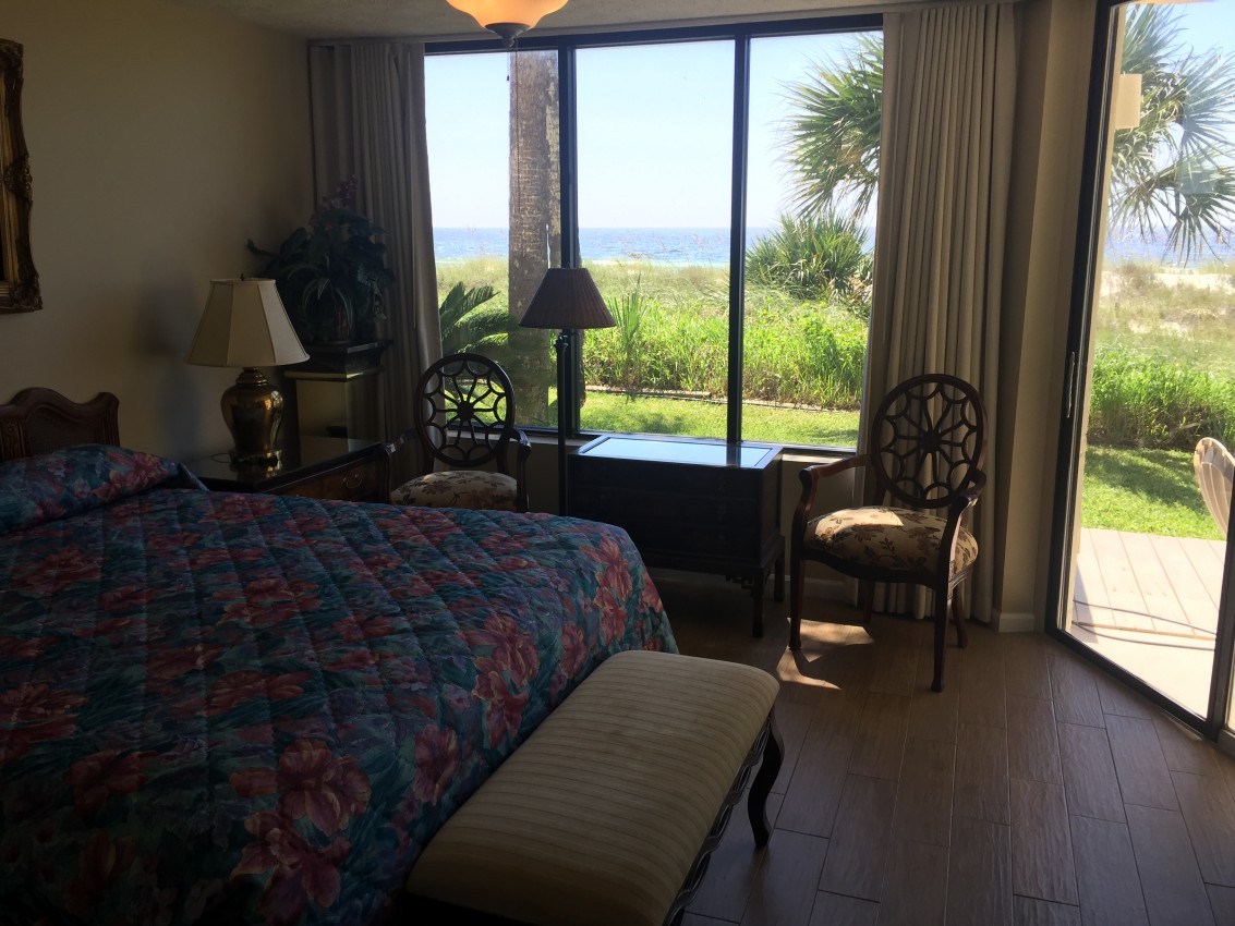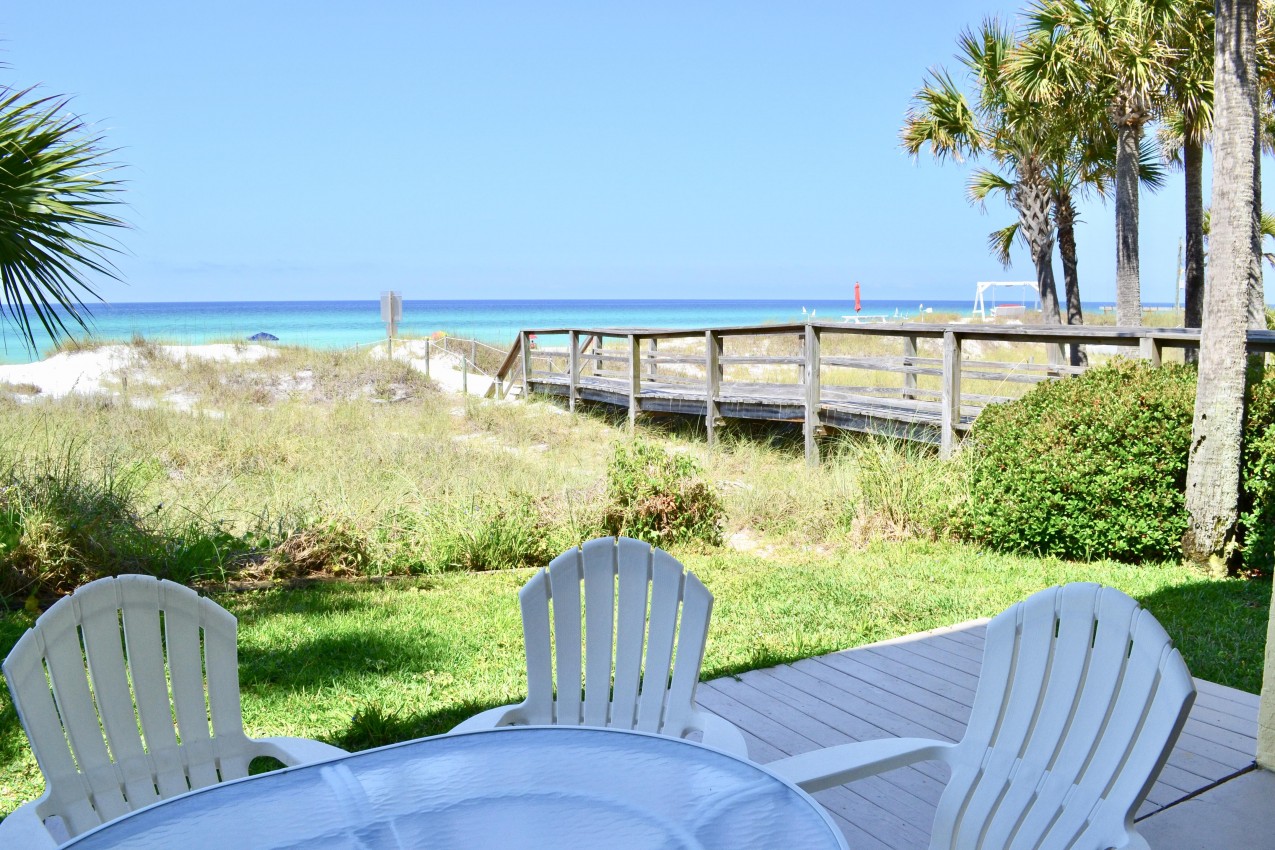 Exclusive gulf front condo fully furnished with all the necessities and comforts of home. SunSeeker is a three story complex with a total of 6 units situated on a quiet boulevard off South Thomas Drive. SunSeeker Unit #2 is a ground floor condo and parking is provided just outside your door. This condo is a favorite for those who do not want to climb stairs and those who enjoy the additional green