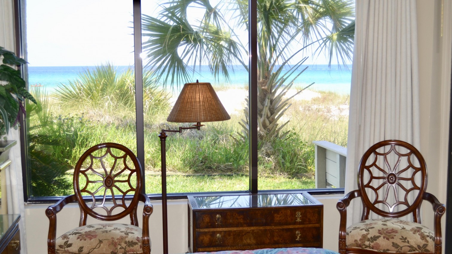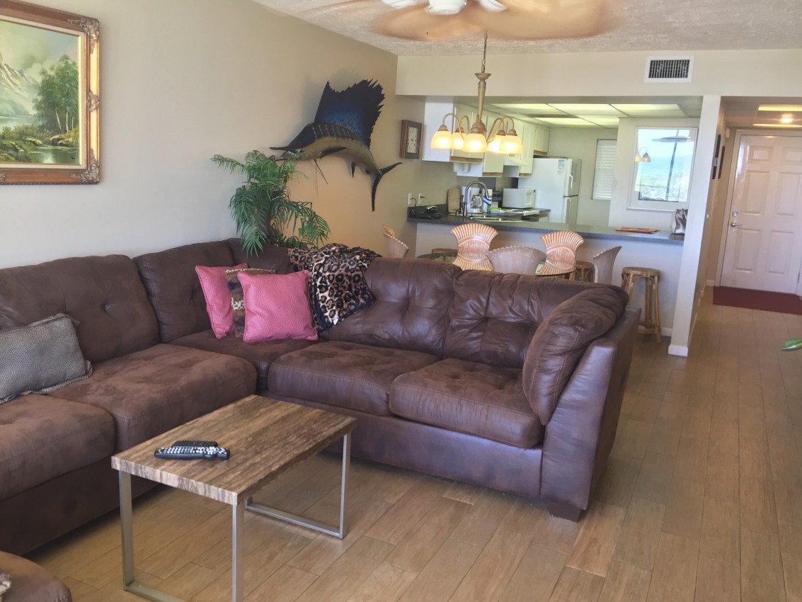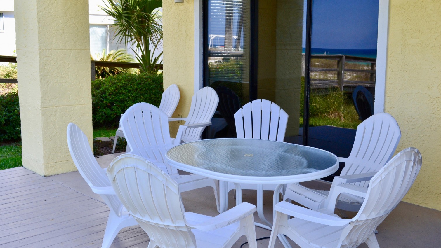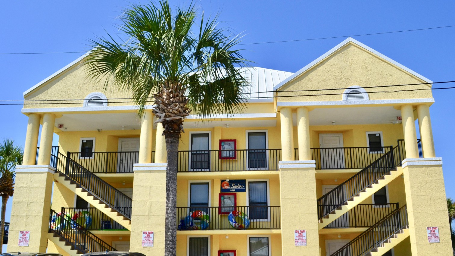 Exclusive gulf front condo fully furnished with all the necessities and comforts of home. SunSeeker is a three story complex with a total of 6 units situated on a quiet boulevard off South Thomas Drive. SunSeeker Unit #2 is a ground floor condo and parking is provided just outside your door. This condo is a favorite for those who do not want to climb stairs and those who enjoy the additional green