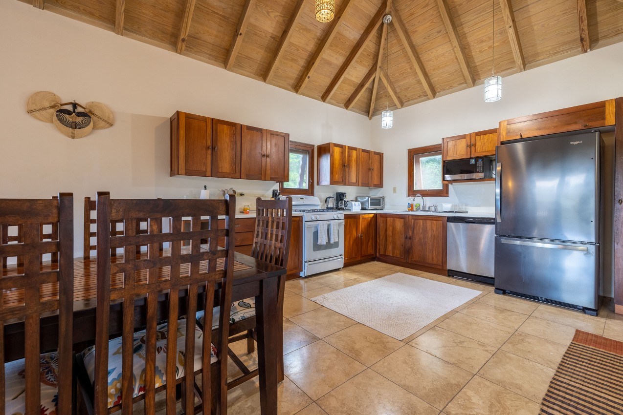 The charming garden of mature fruit trees & bright flowering plants reflect harmony with nature. You may be lucky enough to sight a green iguana in the garden or the Blue Heron which visits the pool at dusk!