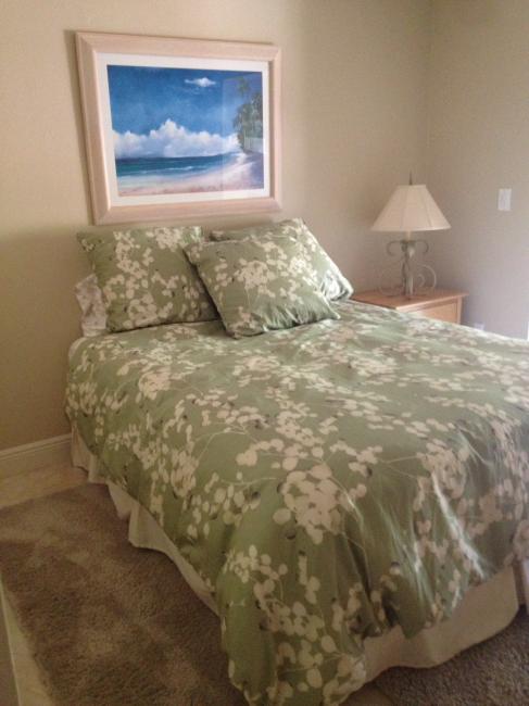 This is a beautiful newly renovated and newly decorated, spacious feeling, 2 bedroom, 2 bath condo with an office alcove, and a laundry room. It has cable, WIFI and a 65 inch WIFI TV. It has a screened in front lanai and a glassed and screened "interior" lanai (made to be an extension of the interior space glassed in with air conditioning or open with screens)with beautiful views overlooking a scenic lake on Foxfire's championship 27-hole golf course.