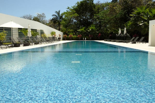 Beach club, gym, paddle court, underground parking, golf court, spa, several pools, solarium with grilling area.