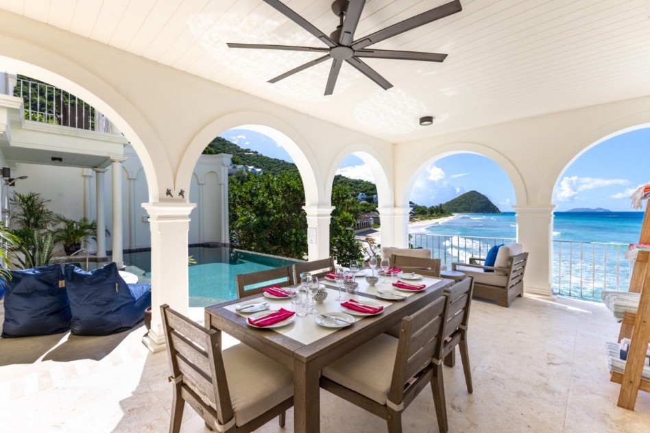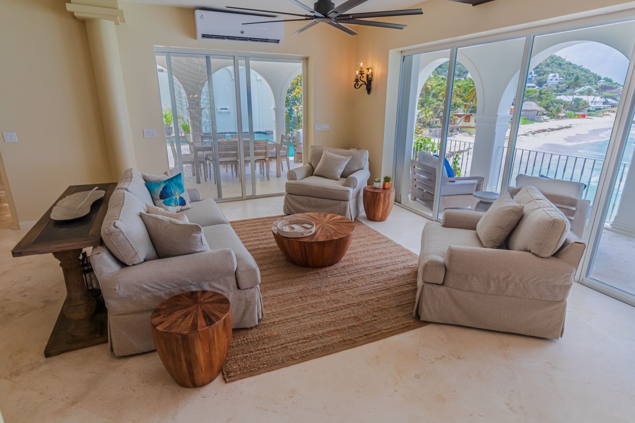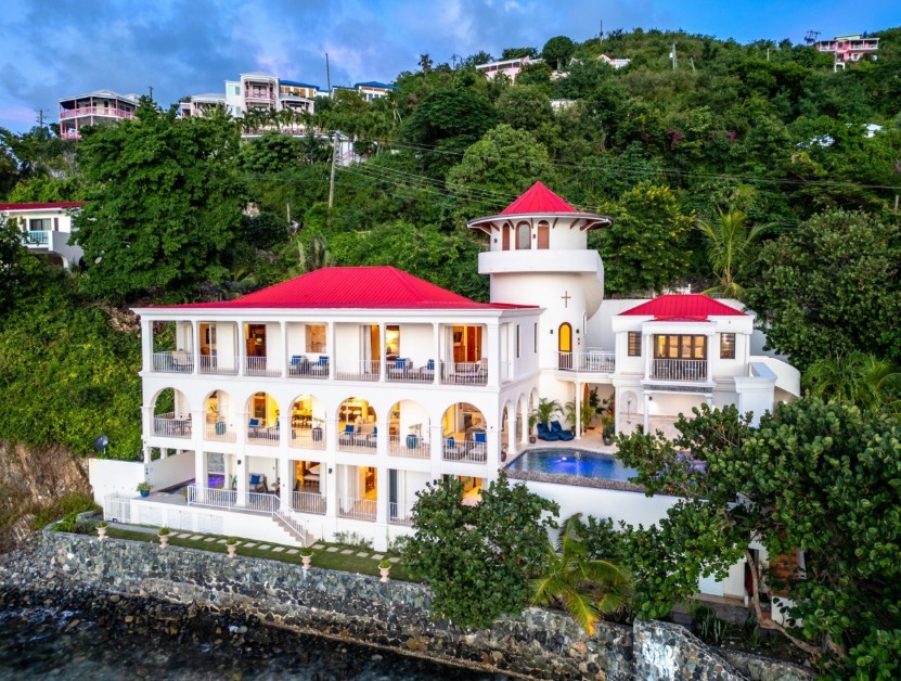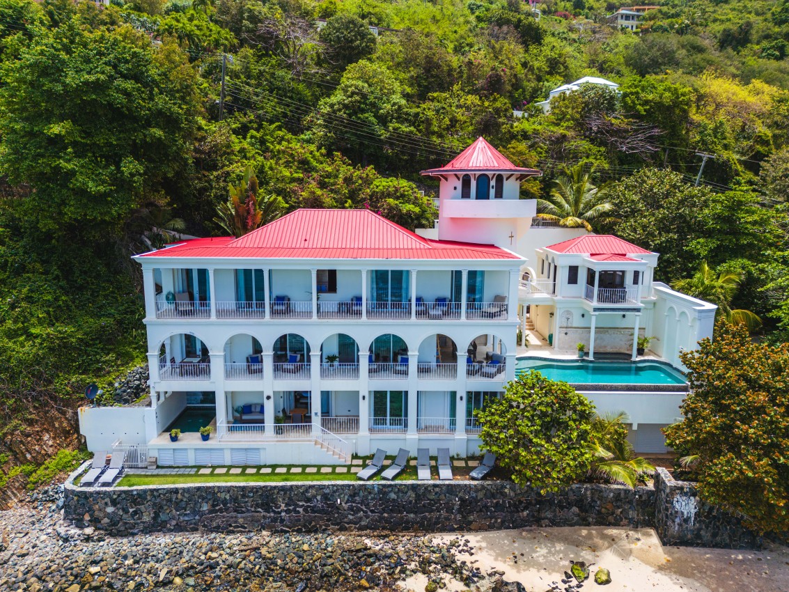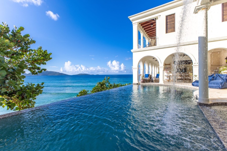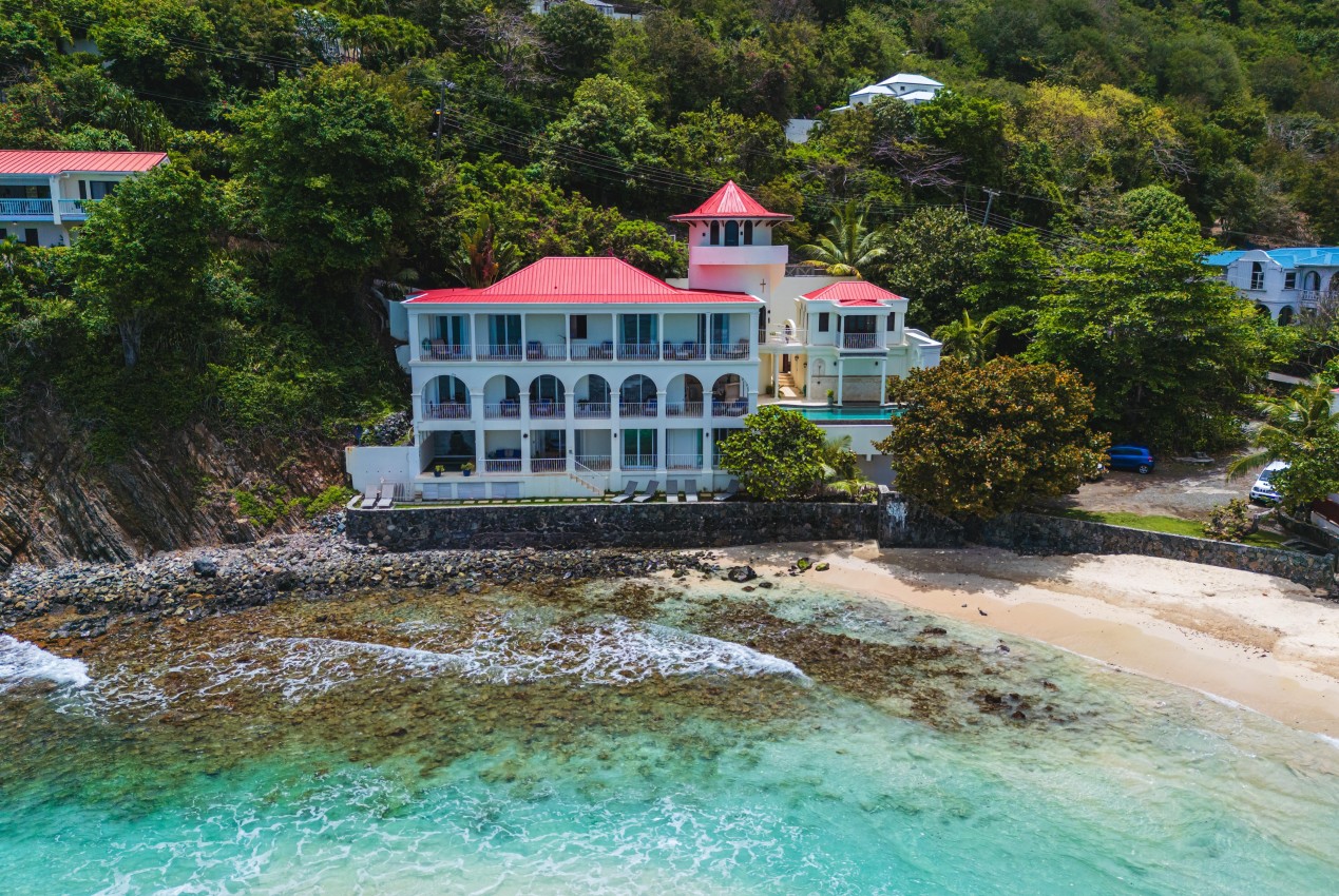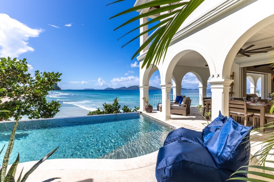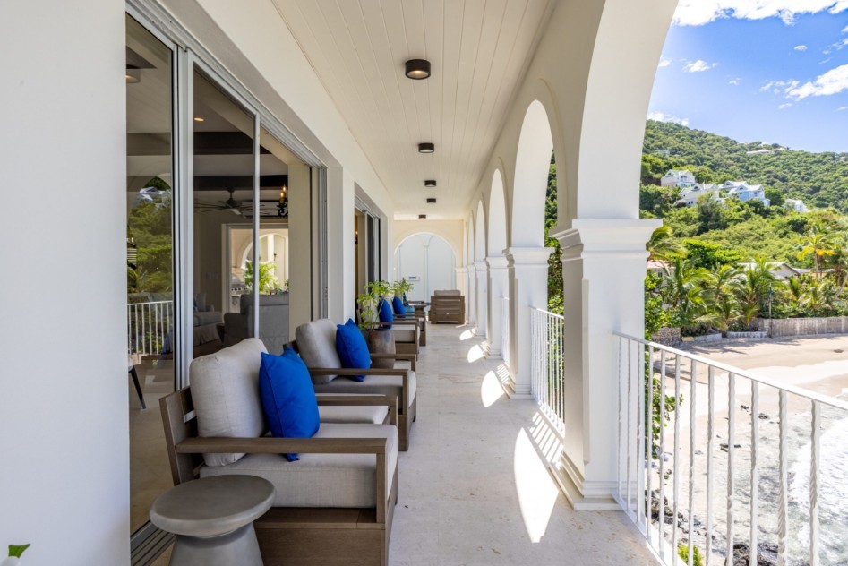 Set at the beginning of Long Bay, one of the most photographed and picturesque beaches in the Caribbean, Mare Azzurro formerly Sterling House is a unique 6 bedroom, 6.5 bathroom world class beachfront property with gourmet kitchen, elevated free form mosaic tiled infinity pool, castle tower, media room, artistโs studio and private guest suite with a 2nd mosaic tiled pool. All of this with world class amazing views from every room. The only beach house on Long Bay Beach this unique location offers outrageous 180-degree panoramas of sand, sea and outer island views.