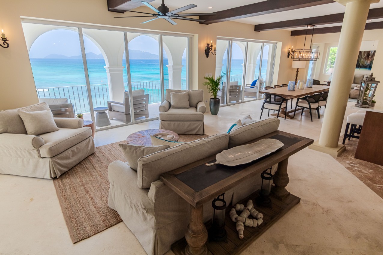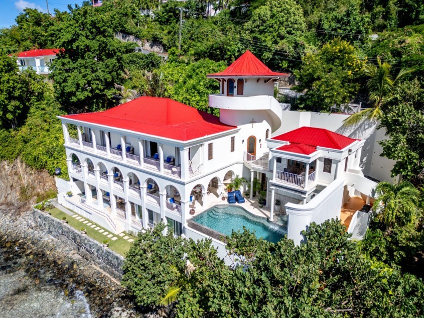 Set at the beginning of Long Bay, one of the most photographed and picturesque beaches in the Caribbean, Mare Azzurro formerly Sterling House is a unique 6 bedroom, 6.5 bathroom world class beachfront property with gourmet kitchen, elevated free form mosaic tiled infinity pool, castle tower, media room, artistโs studio and private guest suite with a 2nd mosaic tiled pool. All of this with world cl
