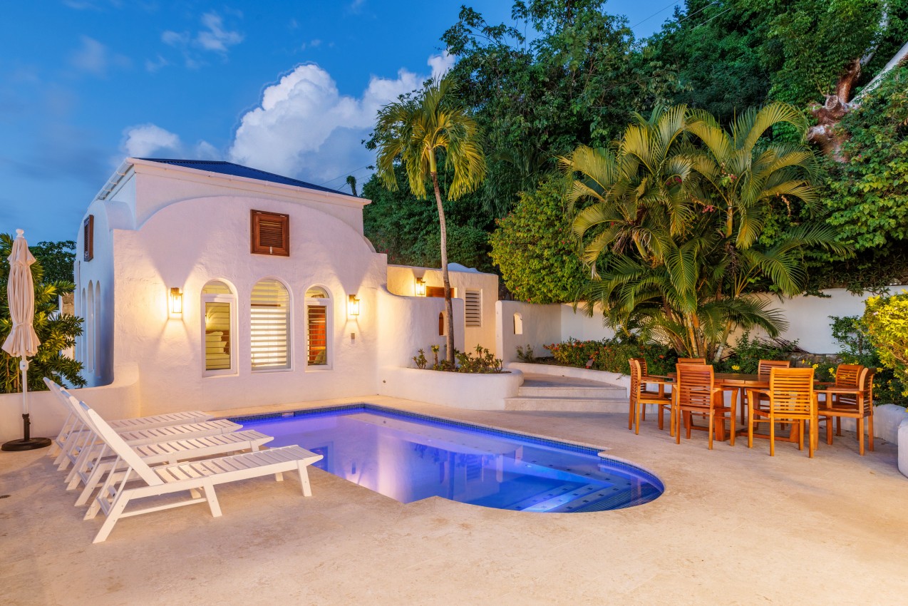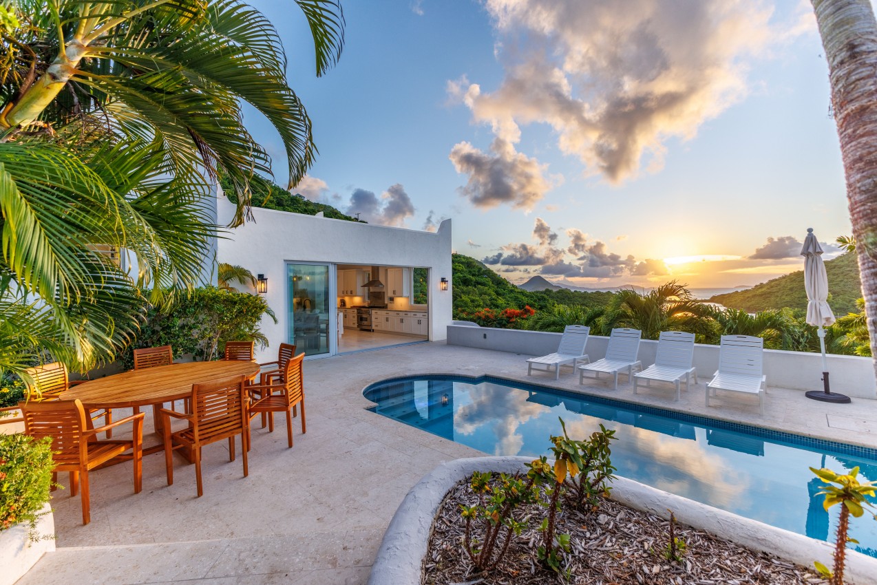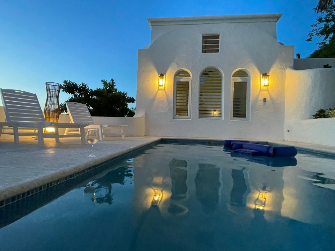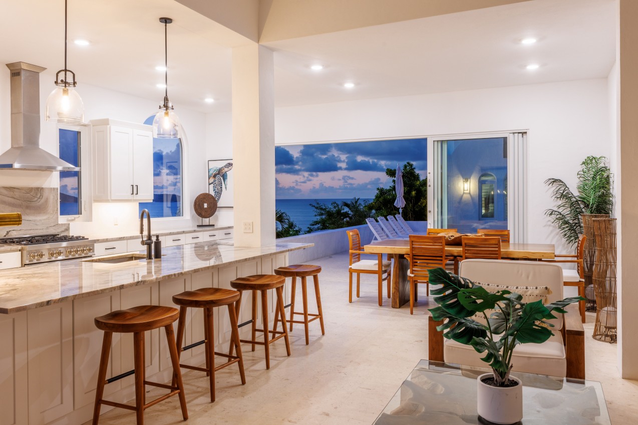 Santorini has some lovely dark wood furniture to relax & take the Caribbean breezes during your stay. Lots of natural light gives you a spacious feeling to the villa. The villa is spread over 3 buildings with a central pool terrace to experience the indoor-outdoor unbelievable ocean views.