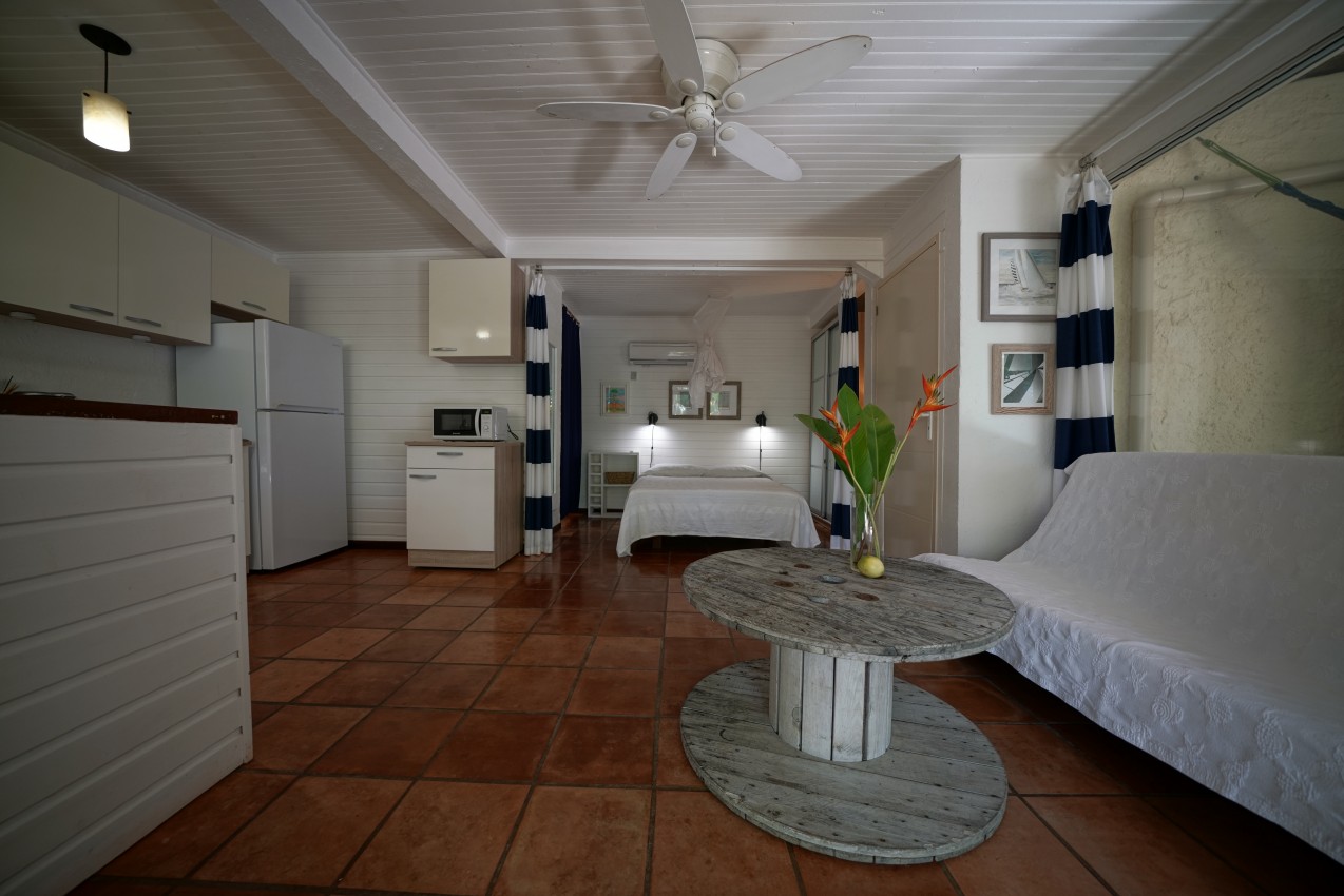 At Surfside Martinique, indulge in the comfort of our cozy studio apartments set within a lush tropical garden. Experience the tranquil vibes of a Caribbean island getaway, complete with a shared saltwater pool and a stunning white sand beach just 30 steps away (yep, I counted every one!).