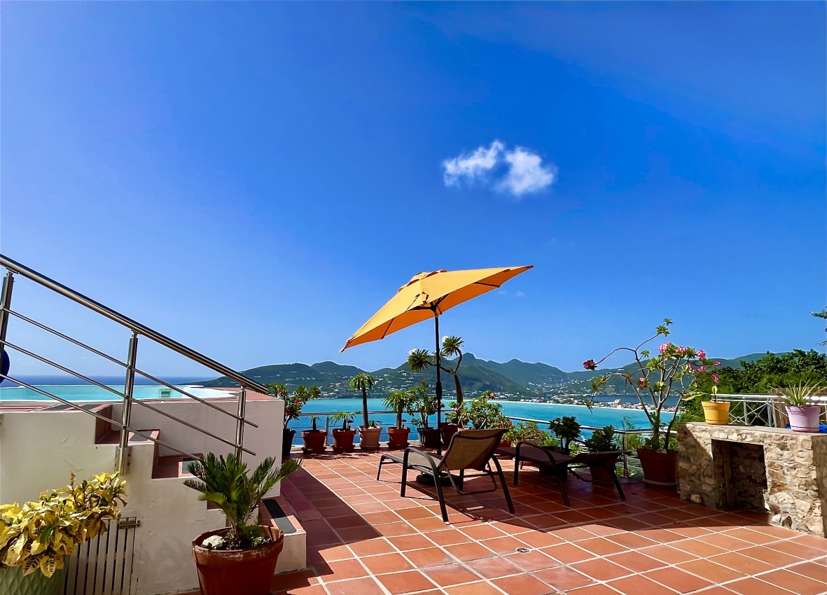 Enjoy endless ocean views from the large veranda. Take a dip in the private plunge pool. Laze on the cushioned loungers and simply lift an umbrella if you get too much sun. Watch the cruise ships and barges move in and out of the harbor. Grab the beach towels and cooler and head to the beach. Shop till you drop in downtown Phillipsburg. Phone home with free calling to the USA and Canada. Facebook or email with the secure Wi-Fi. Print off travel documents using the wireless printer. Grab a book from the lending library and get comfy in the office, living room, or on the veranda. Watch the butterflies flit over the veranda. Look for the monkeys in search of mangos. Prepare meals, snacks or drinks in a fully appointed kitchen. Catch up on your favorite TV shows on flat screen television. Rain in the forecast – no problem. Sit under the covered deck and be amazed by spectacular rainbows. Use the island phone to make dinner reservations. Put on some music, grab a drink and view the amazing sunsets. Watch for the illusive “Green Flash” on a clear horizon. Search for constellations in the night sky. See the sparking Great Bay night lights. Enjoy the peace, serenity and tranquility of the Caribbean trade winds. Spend time with the one you love!