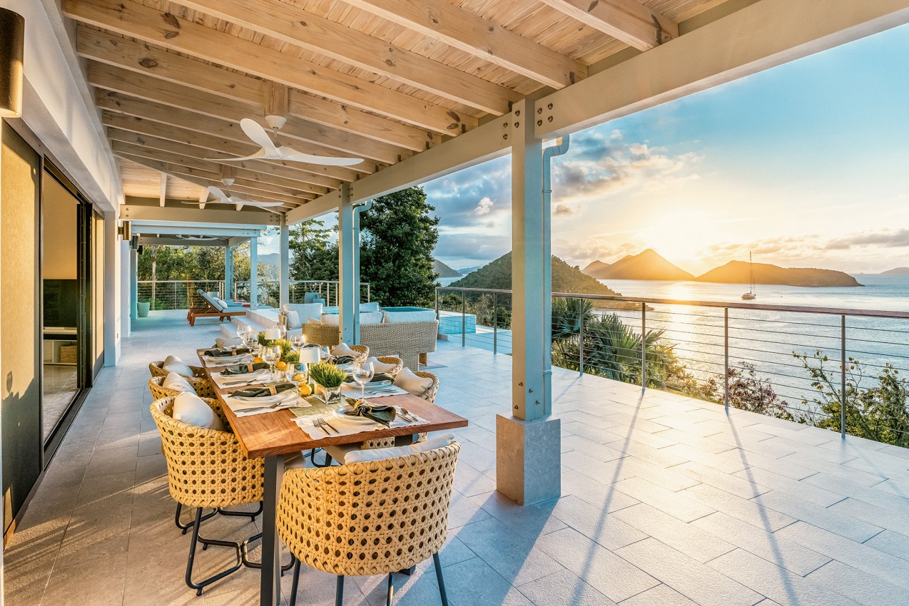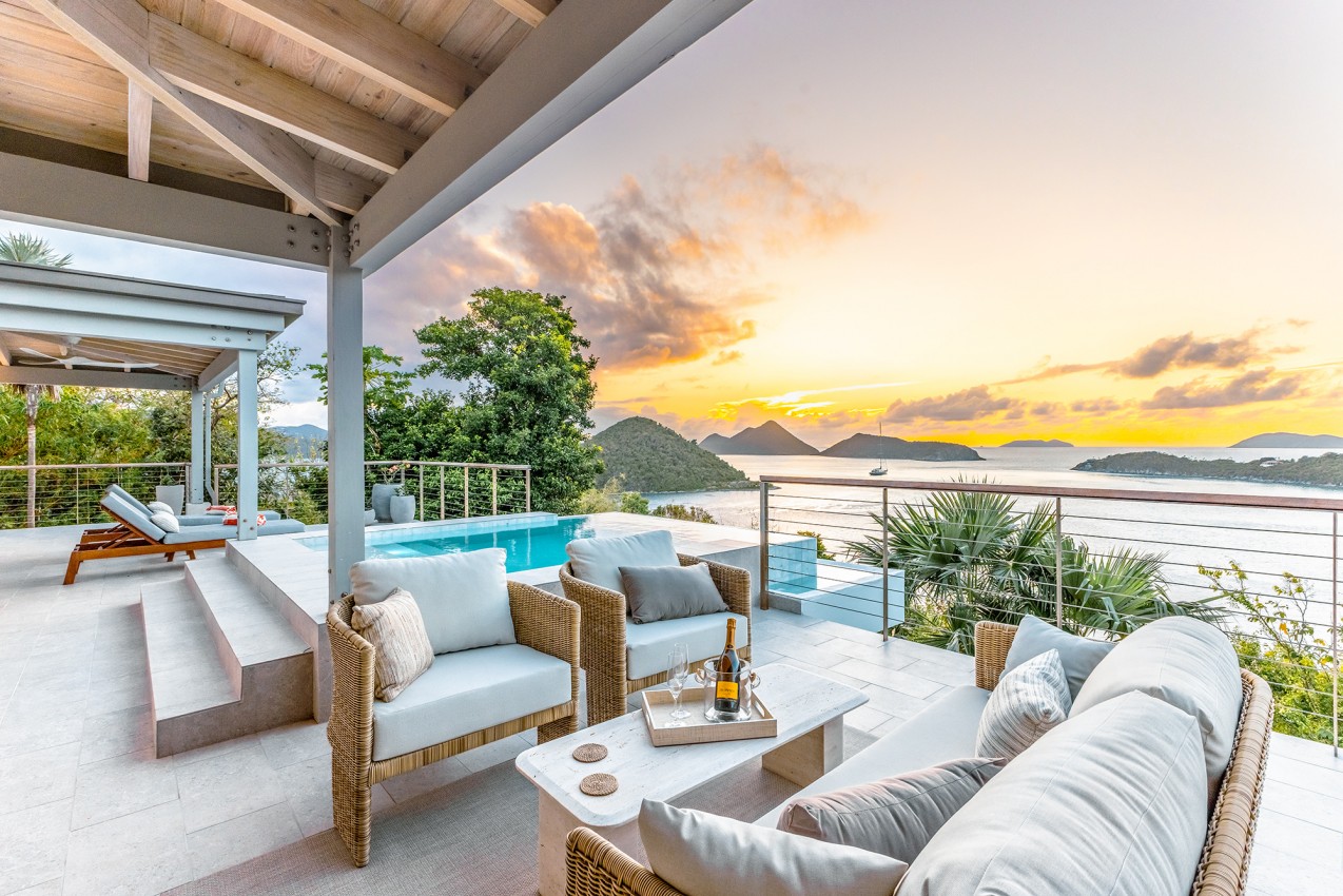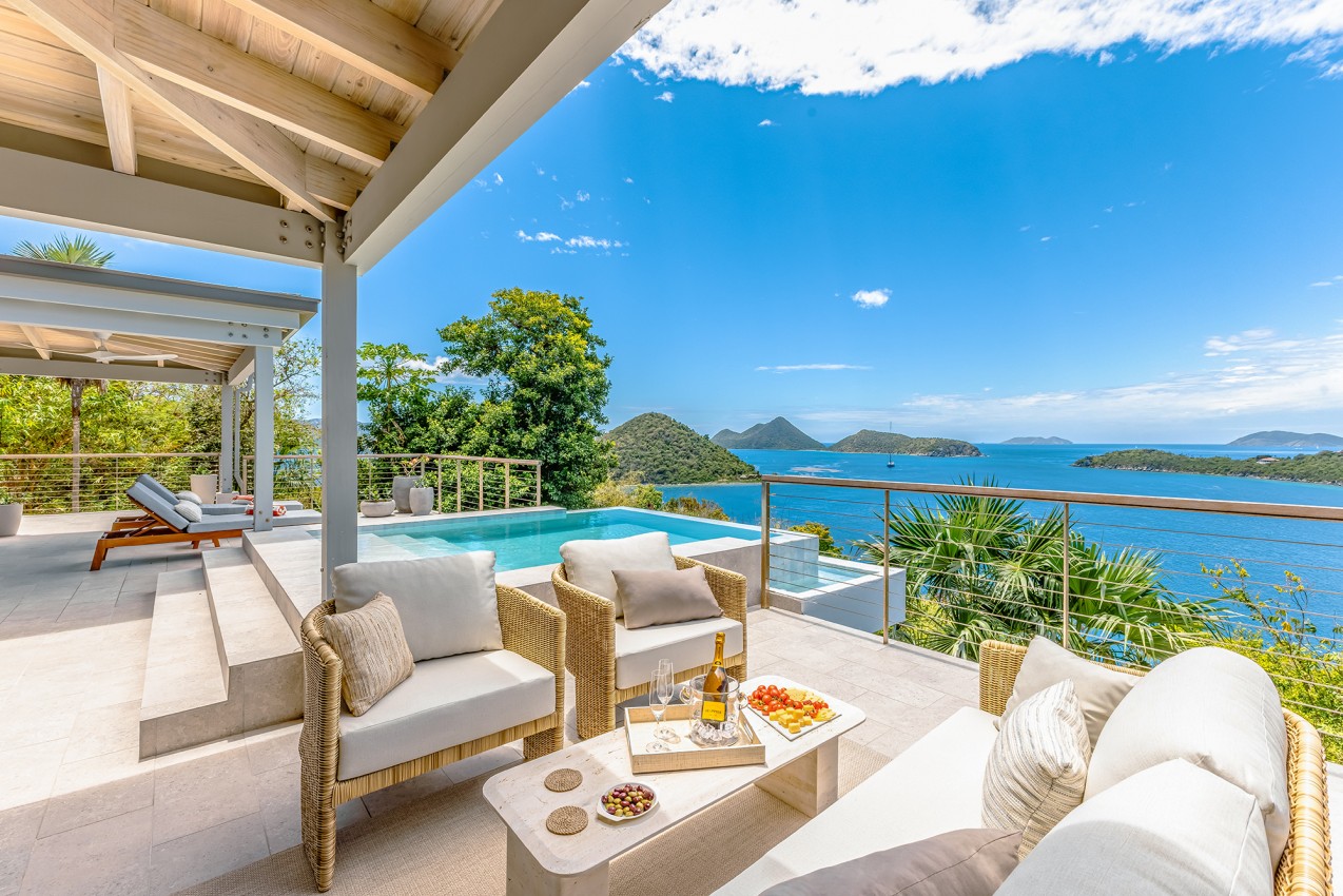 Frenchman’s Paradise an 4-bedroom villa on Frenchman’s Cay with unbelievable views looking towards Little Thatch with St John & St Thomas in the distance.