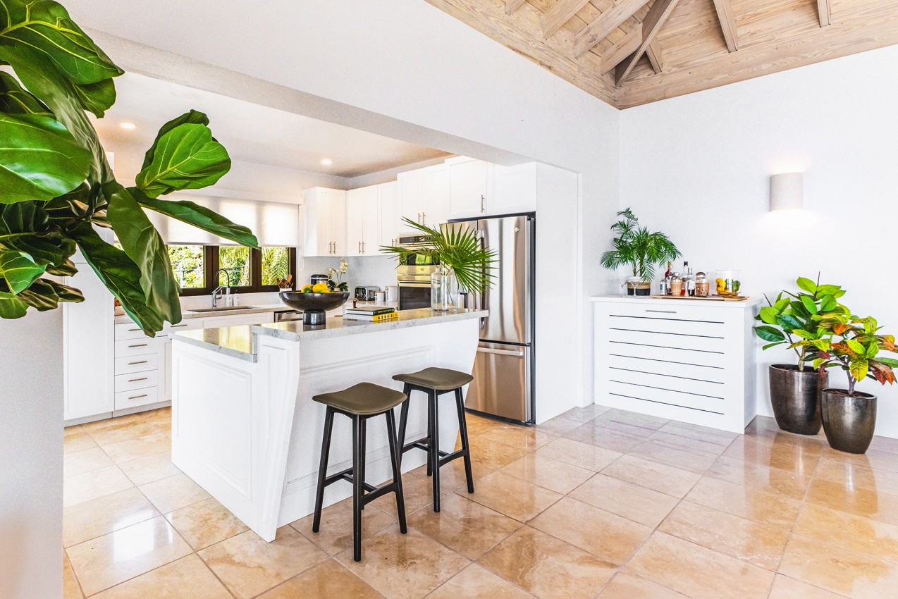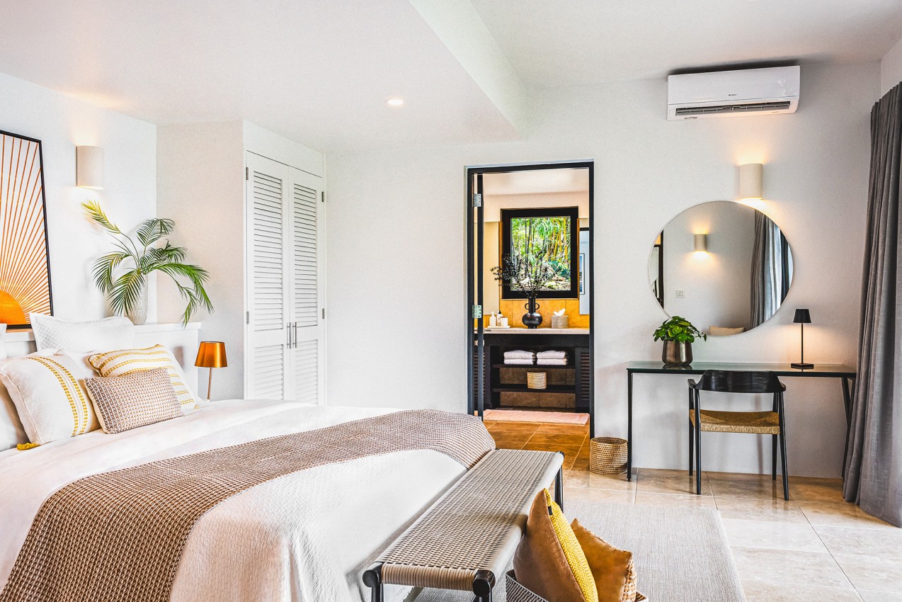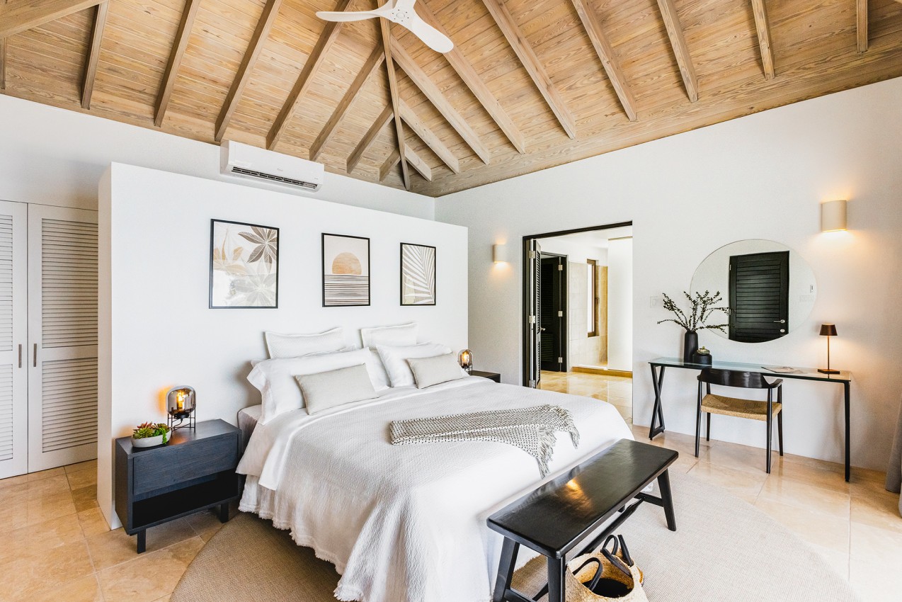 This villa is finished to an extremely high standard with a mix of the Caribbean & West Indian charm. The living area benefits from plenty of natural light through floor to ceiling glass sliding doors. Lovely deep-cushioned sofas & occasional chairs offer a great place to relax & unwind. There is air conditioning throughout the villa to ensure maximum comfort during those hot days. A well-equipped kitchen offering all the amenities you will need.