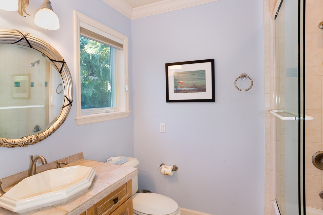 The main floor includes a queen guest room with cable TV and private bath. The upper level guest rooms are adjoined by an oversized Jack and Jill bath with dual shower heads. The sunrise view over the bay is available from the two upper level guest rooms. This home can comfortably sleep 12. There's a large elevator to accommodate the elderly or anyone who's just plain tired!