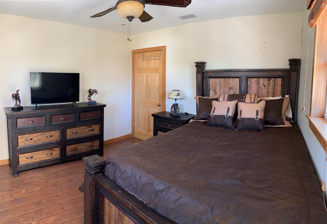 Rustic chic honeymoon suite for couples tying the knot at Ever After Farms Ranch. The decor is gorgeous, the bed is ultra comfortable and its spacious enough to be a helpful place during the wedding day too.